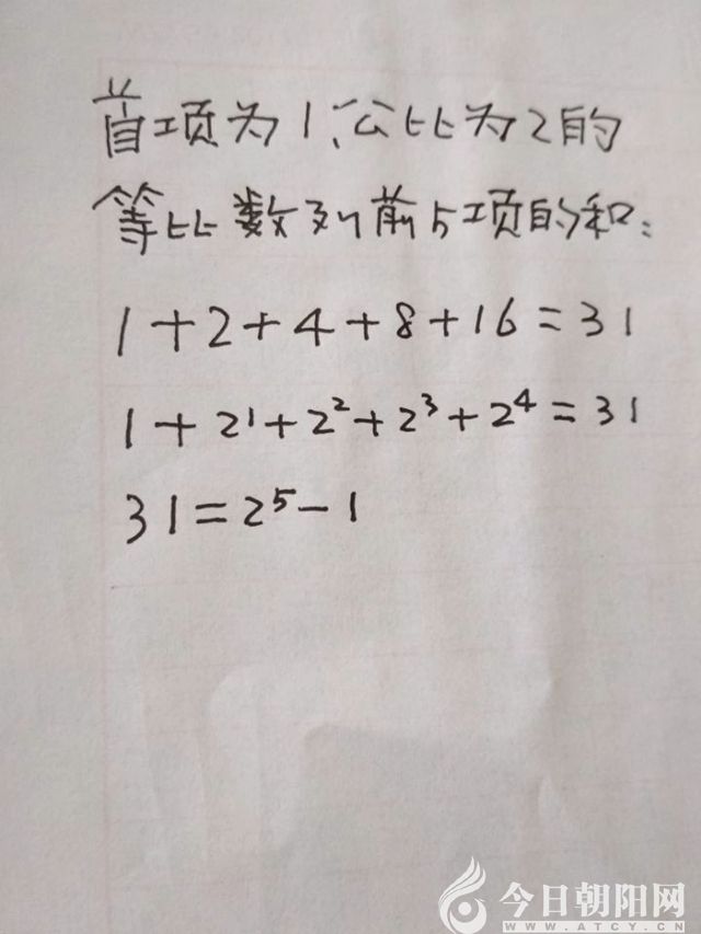 當(dāng)然,荷花絕不會(huì)按等比數(shù)列開放。“荷花定律”要說一個(gè)道理,我則溫習(xí)一下等比數(shù)列,希望延緩幾天老年癡呆。這個(gè)算法,我通過求前5項(xiàng)的和進(jìn)行了驗(yàn)證。