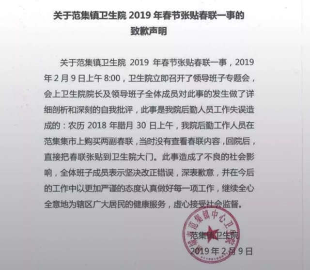 2019年2月9日,河南省項(xiàng)城市范集鎮(zhèn)衛(wèi)生院,發(fā)了一個(gè)道歉聲明。內(nèi)中寫道: