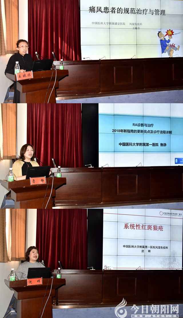 接下來,進入了學術講座環(huán)節(jié)。中國醫(yī)科大學附屬盛京醫(yī)院風濕免疫科主任王曉非圍繞“痛風的定義、痛風治療面臨的問題、中國痛風診療指南、飲食控制原則、運動對痛風的影響”等內容,講解了《痛風患者的規(guī)范治療與管理》;中國醫(yī)科大學附屬第一醫(yī)院風濕免疫科副主任魯靜從“類風濕關節(jié)炎的病理、臨床表現(xiàn)、實驗室檢查、診療流程”等方面,對《類風濕關節(jié)炎的診斷與治療》進行了解讀;中國醫(yī)科大學附屬第一醫(yī)院風濕免疫科主任醫(yī)師沈暉以《系統(tǒng)性紅斑狼瘡》為題,細致解析了紅斑狼瘡的概述、發(fā)病原因、臨床表現(xiàn)與治療。