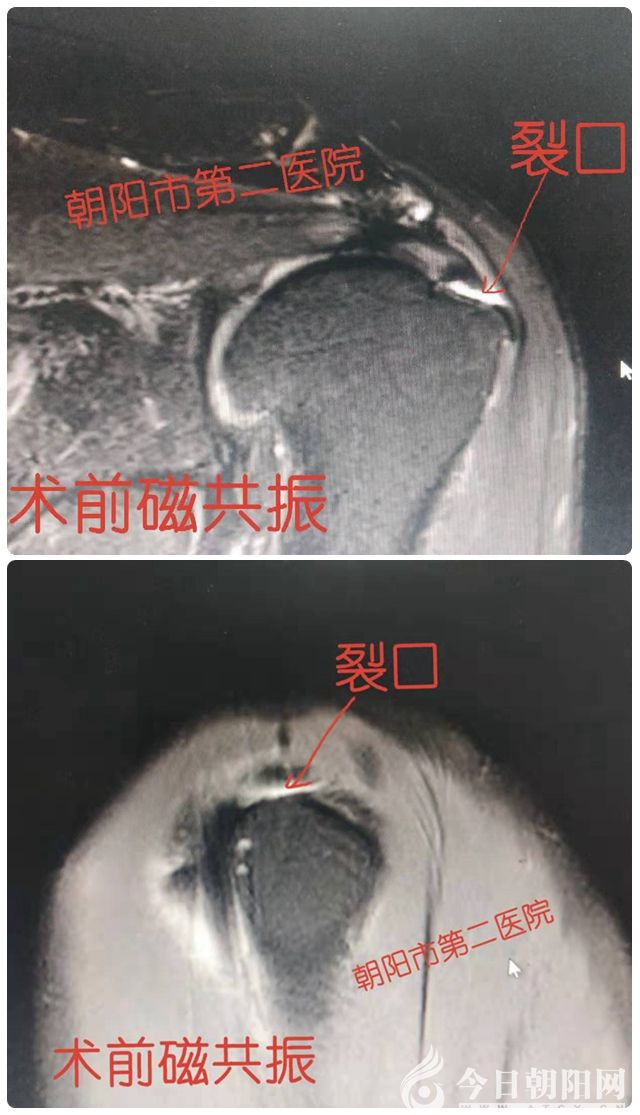 患者趙某,中年男性,家住朝陽(yáng)市龍城區(qū)七道泉子鎮(zhèn),10月11日因“車(chē)禍外傷后左肩部疼痛、夜間疼痛劇烈不能入睡、活動(dòng)受限”來(lái)到市二院關(guān)節(jié)顯微外科就診。經(jīng)過(guò)查體及磁共振成像檢查,診斷為“左側(cè)肩袖損傷”。
