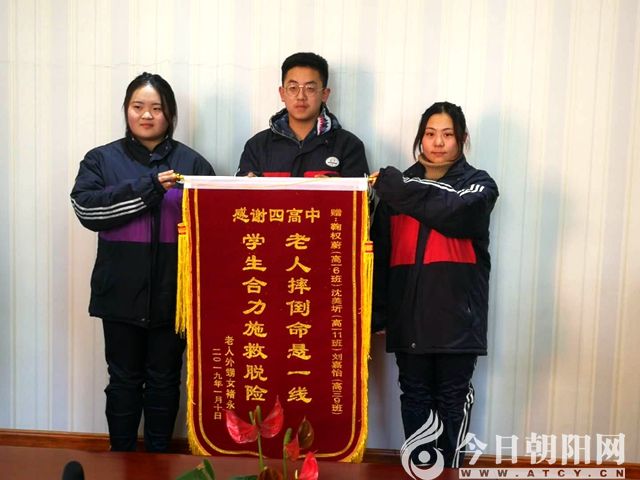 1月22日,遼寧省朝陽市第四高級中學(xué)來了幾位客人,他們一臉真誠,滿心感激,送上手捧的錦旗,連聲道謝,感謝四高中,感謝三位可愛可敬的好同學(xué)?,F(xiàn)場其樂融融,被有愛心懂感恩的和諧氛圍籠罩。