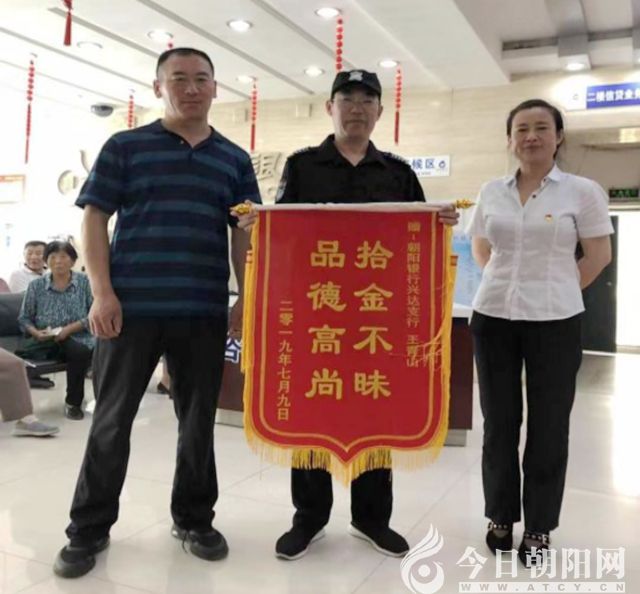 7月9日,朝陽銀行興達(dá)支行的大堂出現(xiàn)了暖心的一幕:市民于先生把一面寫有“拾金不昧 品德高尚”字樣的錦旗,送到了朝陽安平集團(tuán)駐朝陽銀行保安員王青山的手中,表達(dá)了發(fā)自內(nèi)心的感激之情,一連串的感人畫面引來了銀行辦公人員及儲(chǔ)戶的廣泛點(diǎn)贊。