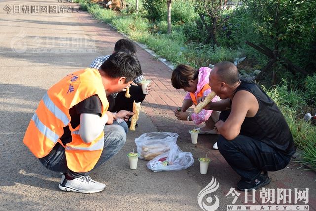 他們運送完第一車垃圾后才吃上早飯。四個人蹲在地上圍成一圈,拿著油條跟豆?jié){,有說有笑地談論著工作瑣事,站在一旁的小編真切地感受到了每個人心里的滿足感以及對待生活的那種充滿自信的態(tài)度。簡單地吃過飯,他們又開始了新一輪的工作。