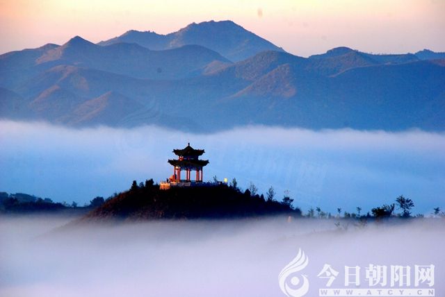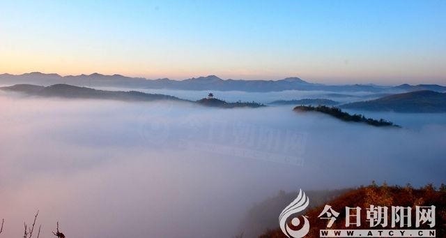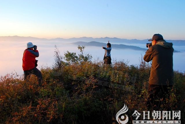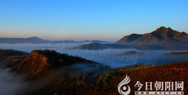 這期間,最活躍的還是祝國(guó),他在朝陽(yáng)同學(xué)中是公認(rèn)的“聯(lián)絡(luò)官”,所有的大事小情,都是他組織安排。這次,他發(fā)現(xiàn)了一處美景,在羊山鎮(zhèn)境內(nèi)的七道河子與八道河子兩個(gè)小村落之間,由于特殊的地形地貌,小凌河在此蜿蜒回轉(zhuǎn)成U字形河灣,被譽(yù)為“凌龍灣”。那里藍(lán)天碧水,河畔懸崖陡峭,兩岸風(fēng)光秀美。氣勢(shì)宏偉的興福寺建在河畔山洼里,為秀美山川增添了又一景點(diǎn)。近年,當(dāng)?shù)卣诖说赝顿Y興建了小凌河旅游風(fēng)景區(qū),為旅游業(yè)的發(fā)展增添了濃墨重彩。小凌河猶如一條玉帶蜿蜒盤(pán)旋,在山間中穿行,由西向東曲折迂回,奔流而下,形成了九曲十八彎的美好景色。老同學(xué)的講述讓我坐不住了,真想立刻就去,只是天太晚,外邊的雨還在下,去不成。王祝國(guó)說(shuō)下雨也許是好事,如果后半夜雨停了,深秋季節(jié)晝夜溫差大,早上還可能出現(xiàn)更美的景觀(guān)——云海,這兩年他一直在尋找云海,只是一直沒(méi)遇到。在歡快的氣氛中,我們說(shuō)著,笑著,一直折騰到很晚。