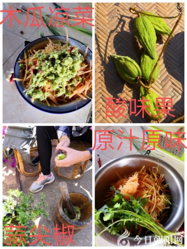 穿過南養(yǎng)河邊的大片竹林,過了三四座木橋,來到一座獨(dú)立的竹樓前,一位外地來拍短片的女士說,這里就是曾經(jīng)拍攝《讓我聽懂你的語言》電視劇的地方。騎行隊(duì)群主告訴我們,今天午餐地點(diǎn)就定在這里,大家就地休息。哈尼族姑娘、騎友小趙,就地取材用園中的木瓜、香菜、野山椒、大蒜和一種酸酸的野果為大家制作了一道美食,讓大家品嘗,味道酸辣爽口,讓人回味無窮。