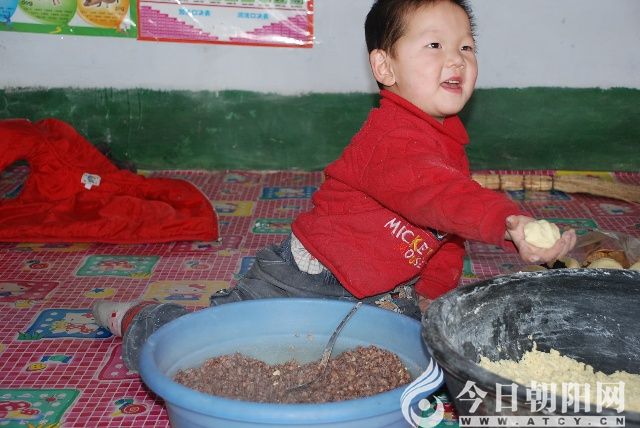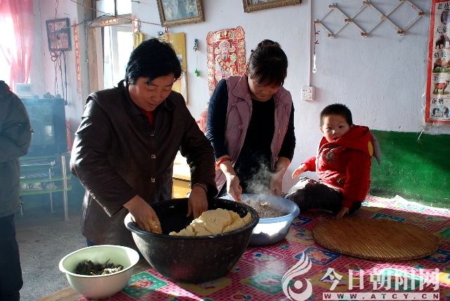 一家人坐在熱炕頭包豆包溫馨的畫面