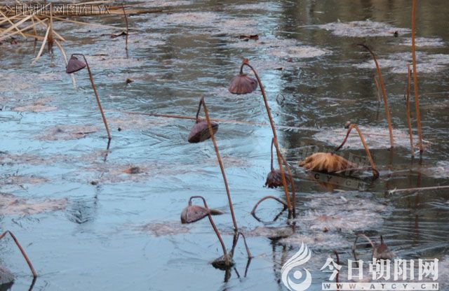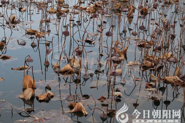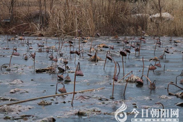 枯荷給這個(gè)寒冷的冬天,增添了一份美好??粗鴿M池的枯荷,錯(cuò)落有致地立在結(jié)滿薄冰的河面上,儼然是一幅天然的水墨畫。一個(gè)個(gè)蓮蓬低垂著腦袋,已然是一副睡著的樣子,不知什么時(shí)候頑皮的蓮子早已脫離了她的懷抱,隱匿到了河底,吸收著日月精華,待明年春暖花開再一次破土而出。新的輪回又開始啦!