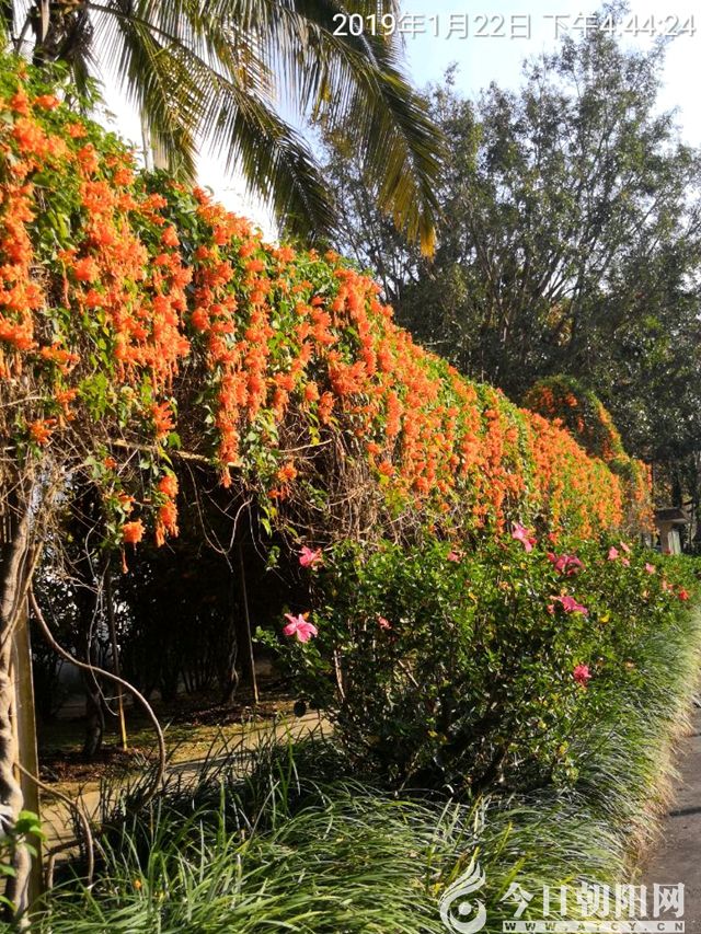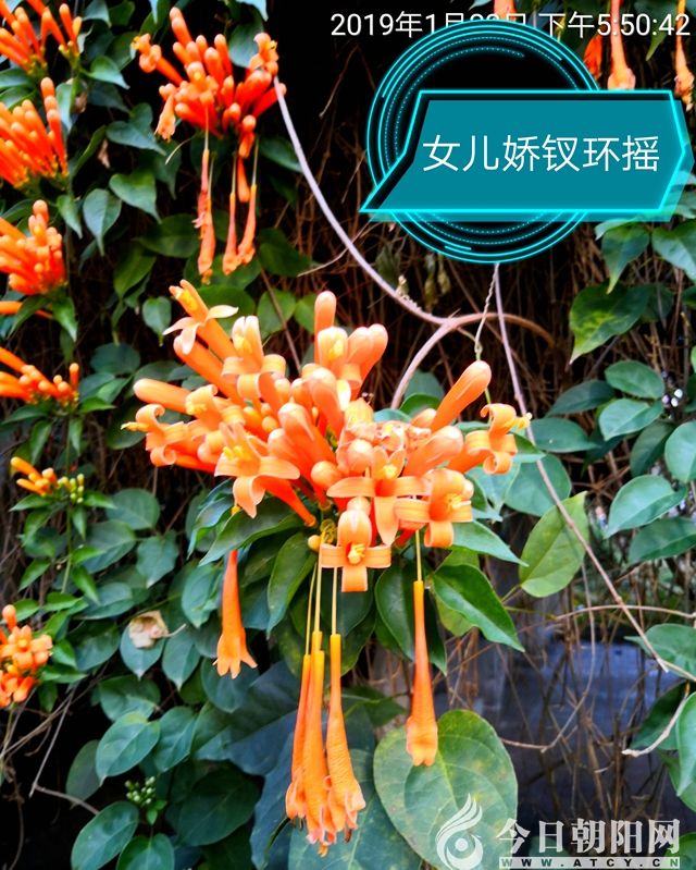 炮仗花也叫火焰籐,花語是“好日子紅紅火火”。炮仗花還是“潤肺止咳,清熱利咽”的一味中藥,每年春節(jié)期間,人們不僅到熱帶花卉園觀賞炮仗花,還有一些本地人,拿著小竹筐來撿落地的炮仗花朵。
