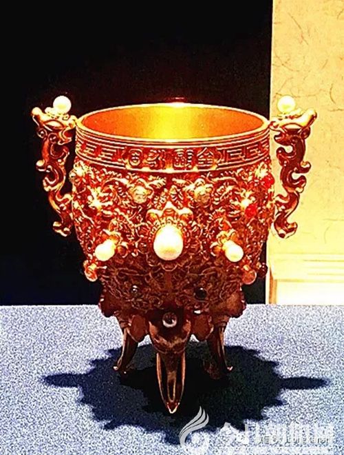 在遼博展出的北京故宮養(yǎng)心殿文物中,鑲金嵌銀的金甌(ōu)永固杯顯得分外華貴,十分搶眼,這涉及到清代皇室的一項(xiàng)重要習(xí)俗:明窗開筆?,F(xiàn)代人過春節(jié)時(shí),會(huì)用放鞭炮、互相拜年等方式來慶祝,而“明窗開筆”則是雍正皇帝開創(chuàng)的賀新春儀式,此后成為定制。