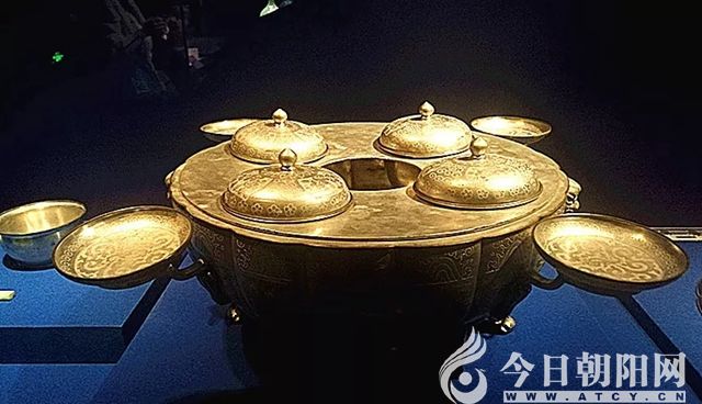 值得一提的是,清朝皇帝特別愛吃火鍋。在遼博展出的故宮養(yǎng)心殿文物中,有一個(gè)銀“甲子萬年”元寶式火鍋,是式樣繁多的清廷大內(nèi)火鍋的一種。此類火鍋呈元寶形,內(nèi)置屜一,火鍋蓋上鏨有“甲子萬年”四字,蓋鈕亦為元寶式?;疱佂葹槿缫庑螤睿總€(gè)如意腿分別刻有“吉祥如意”“年年如意”“萬福如意”等字樣,支架中部放置元寶式火碗一?;疱伾w上鏨有“甲”“子”“萬”“年”四字,為皇帝、皇后或太后慶祝壽辰所用,體現(xiàn)了長(zhǎng)命百歲的吉祥寓意,此類火鍋應(yīng)為萬壽用品。