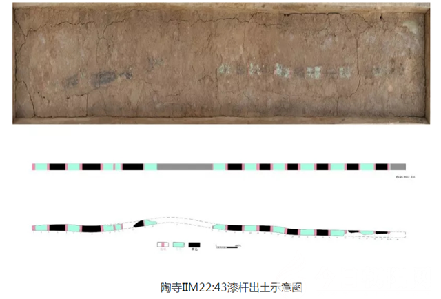 光明網(wǎng)科普頻道發(fā)布了陶寺漆桿出土示意圖: