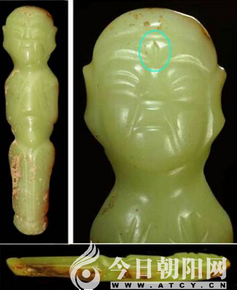 紅山文化時期的人物,額間多有孔洞裝飾,牛河梁遺址出土玉人及內(nèi)蒙古翁牛特旗巖畫人物額間都有孔洞裝飾。這種理念也應(yīng)該與興隆洼文化動物額頭鉆孔的信仰理念有關(guān)聯(lián)。