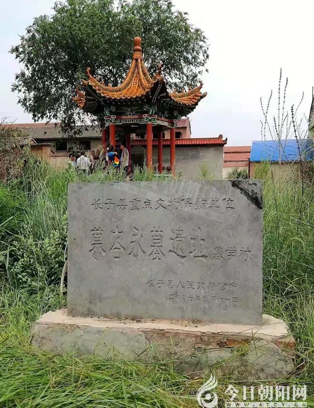 丘寺嶺下的慕容村里,建有西燕帝慕容永的陵亭,亭內(nèi)立有“西燕帝慕容永陵亭記碑”,在慕容永陵前的半人多高的荒草叢里還有一塊“慕容永墓遺址文保碑”,標注為“長子縣重點文物保護單位”。
