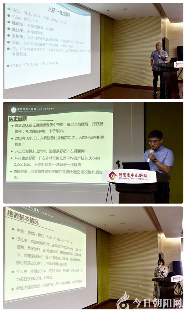 病例討論環(huán)節(jié)由遼寧省腫瘤醫(yī)院結(jié)直腸外科副主任陳玉澤、凌源市中心醫(yī)院普外科主任羅有林、北票市中心醫(yī)院腫瘤血液科主任劉偉東,朝陽市中心醫(yī)院腫瘤內(nèi)一科主任崔秀潔、普外二科主任吳鑫華、普外三科主任袁杰慶分別主持。遼寧省腫瘤醫(yī)院結(jié)直腸外科副主任醫(yī)師張昊、朝陽市中心醫(yī)院普外一科醫(yī)生張帥國、朝陽市中心醫(yī)院腫瘤內(nèi)一科副主任醫(yī)師路琳依次對三個臨床病例作了分享。與會專家進行了熱烈討論,給出了合理化的建議。