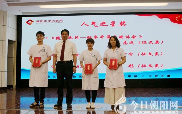 會上,院領導為醫(yī)院日前舉辦的“感動瞬間醫(yī)苑之聲”征文、攝影、小視頻作品征集活動頒獎,并為獲得“人氣之星獎”、“卓越創(chuàng)作獎”、“醫(yī)者仁心獎”、“春華秋實獎”的22位醫(yī)務人員頒發(fā)了證書。此外,醫(yī)院還推薦優(yōu)秀作品參加了遼寧省2019年“中國醫(yī)師節(jié)”作品征集評選活動,其中金小茜、孫大明、張博開三位醫(yī)師的作品取得了優(yōu)異成績。