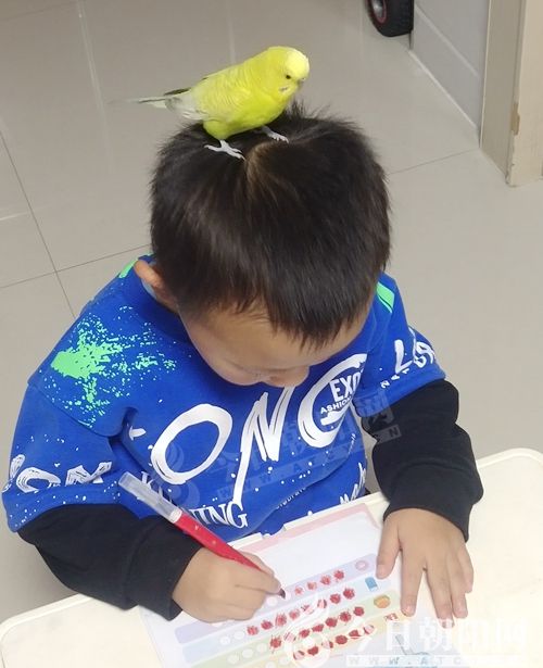 活潑的小鸚鵡成了兒子的好伙伴。兒子學(xué)習(xí)時,他要站在兒子頭上,煞有介事地和兒子一起讀書,認真的樣子仿佛能看懂一般。兒子吃零食時,也要先和小鸚鵡分享一下。小鸚鵡的到來,打開了四歲孩子了解生命的窗口,他總是關(guān)心小鸚鵡的盤子里是不是還有小米,水碗里的水是不是干凈,他會細心地撿起小鸚鵡抖落的羽毛,偶爾和小鸚鵡聊聊天,一句一句地猜測鸚鵡在說什么……孩子與鸚鵡和諧相處的畫面總是那么暖心。