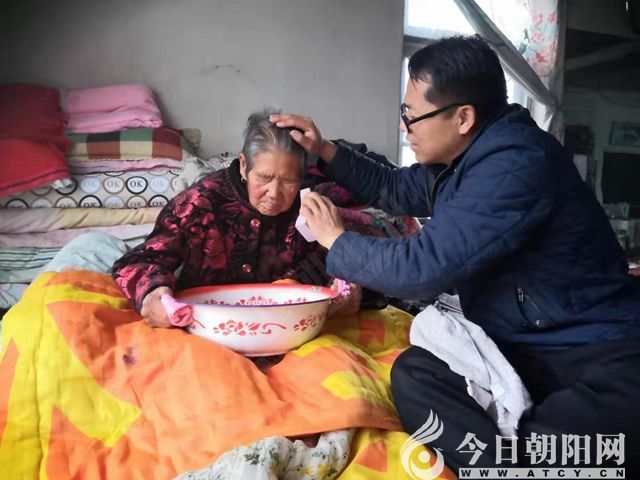 這個時間,妻子女兒做飯,我洗完尿墊晾好后,進(jìn)屋給老母親洗臉。老人家自己坐不穩(wěn),我就讓她倚著被垛,兩邊各擠著一個枕頭,這樣就牢靠多了。