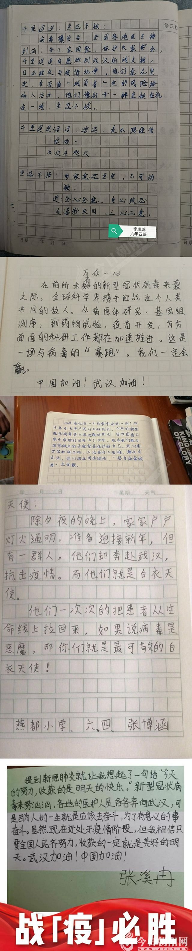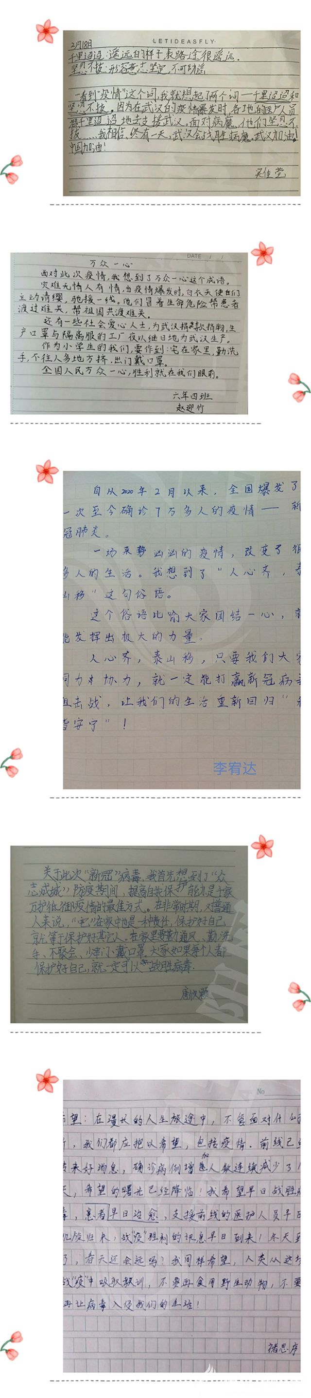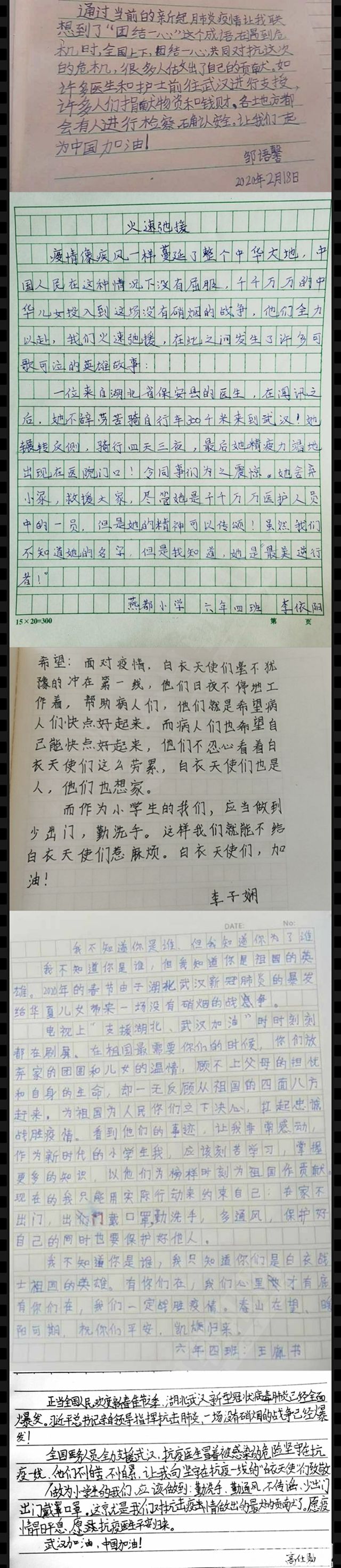 系列活動(dòng)之八:童心論時(shí)事。閆冬老師在微信群里號(hào)召全體學(xué)生以本次新冠肺炎疫情為時(shí)事背景,鼓勵(lì)孩子們把自己由此想到的成語(yǔ)或詩(shī)句,寫成短篇來互相交流,從而達(dá)到既有練筆,又有切磋,還能激發(fā)孩子們愛國(guó)熱情的目的。