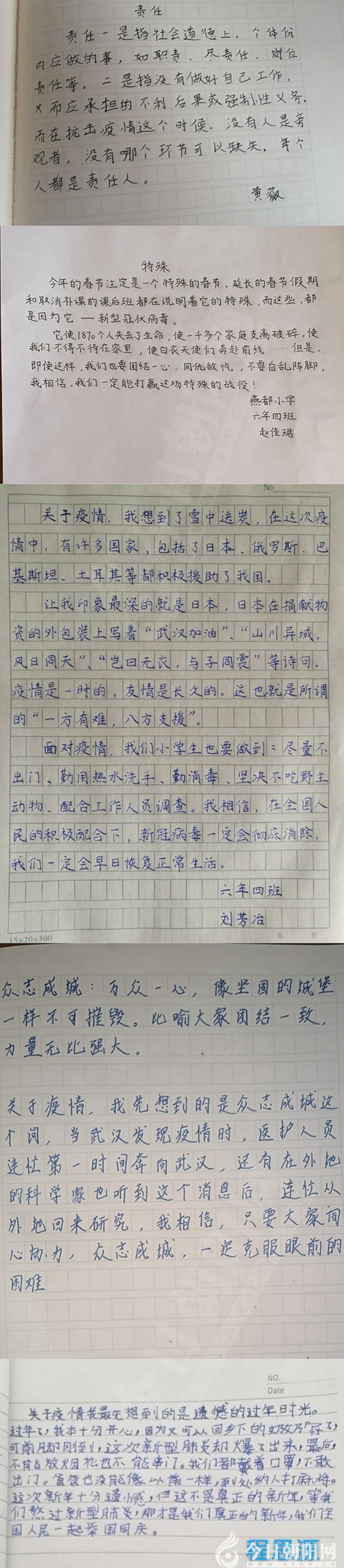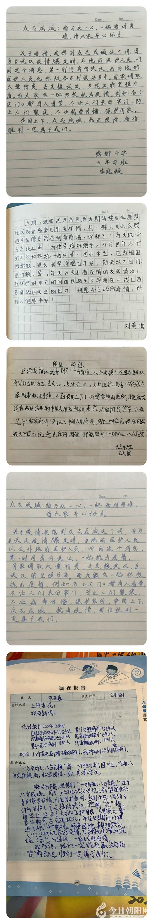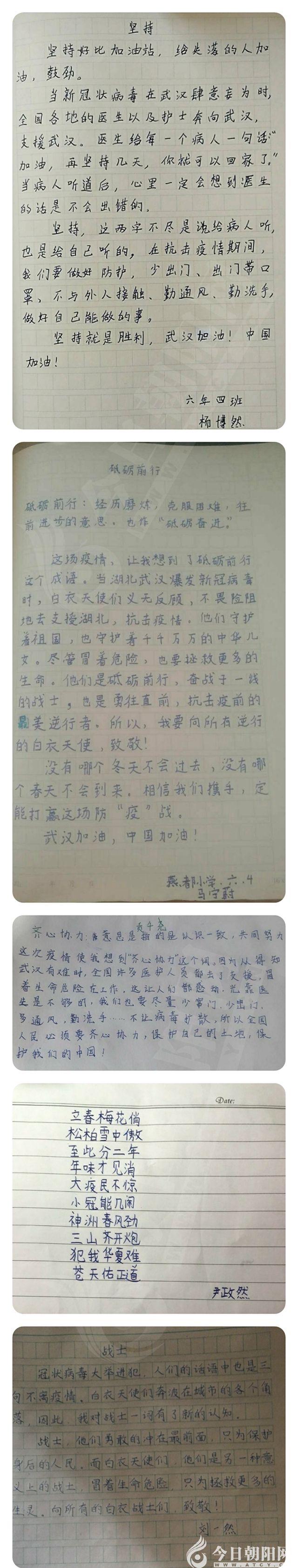 系列活動(dòng)之八:童心論時(shí)事。閆冬老師在微信群里號(hào)召全體學(xué)生以本次新冠肺炎疫情為時(shí)事背景,鼓勵(lì)孩子們把自己由此想到的成語(yǔ)或詩(shī)句,寫成短篇來互相交流,從而達(dá)到既有練筆,又有切磋,還能激發(fā)孩子們愛國(guó)熱情的目的。