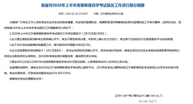 摘要:遼寧省對2020年上半年高等教育自學考試報名工作進行部分調整 @自考生:遼寧省對2020年上半年高等教育自學考試報名工作進行部分調整 原文鏈接:我省對2020年上半年高等教育自學考試報名工作進行部分調整 [編輯 雅賢] 【本網聲明】