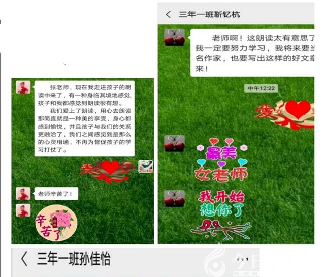 有的家長(zhǎng)發(fā)微信跟我說(shuō),張老師,現(xiàn)在我走進(jìn)孩子的朗讀中來(lái)了,有一種身臨其境的感覺,孩子和我都感覺到朗讀很有趣,我們愛上了朗讀,用心去朗讀那簡(jiǎn)直就是一種美的享受,身心都感到愉悅,并且孩子與我們的關(guān)系更融洽了。