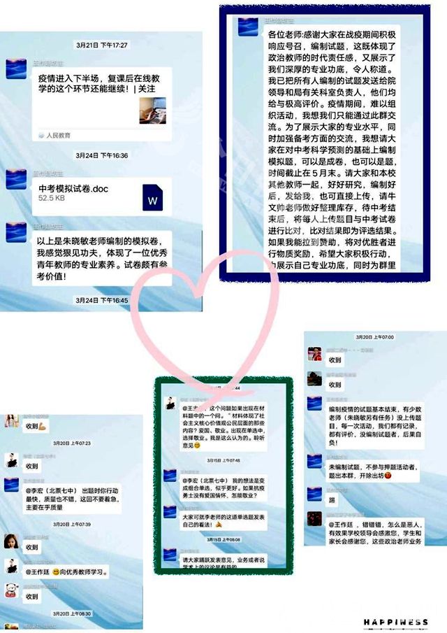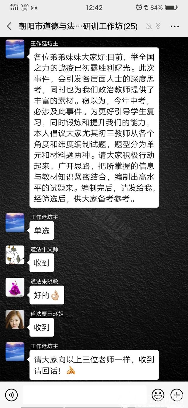 突如其來的疫情,打亂了工作坊最初的工作計劃,但無法干擾勇于前行的腳步,工作坊成員抱以命運共同體的情懷,秉持著團(tuán)結(jié)協(xié)作、奉獻(xiàn)擔(dān)責(zé)的精神,舉起抗擊疫情的大旗,為教育事業(yè)添磚加瓦,與祖國同呼吸共命運!依據(jù)實際情況,調(diào)整了工作坊活動方式,以線上交流為主陣地,把當(dāng)前社會需要作為主攻方向,選時事政治為素材,開展了以試題編制和微課錄制形式的兩大主題活動。