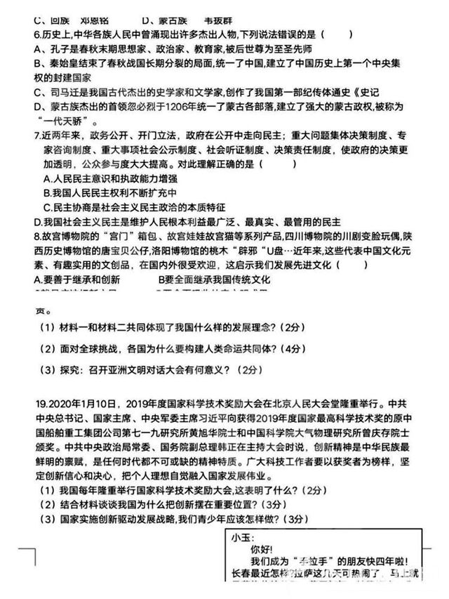 北票市包云磊老師的同步習(xí)題千年老樹根已深,熬過寒冬便是春。中華民族幾千年來歷經(jīng)磨難始終不倒,究其原因就是因為我們有著以愛國主義為核心的民族精神。在一次次的磨難中,一個個普通人挺身而出,為我們的國家、民族奉獻(xiàn)自己。希望我們的國家早日取得戰(zhàn)“疫”的完全勝利!
