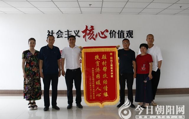 6月24日上午,遼寧省朝陽工程技術(shù)學(xué)校對口幫扶村——雙塔區(qū)桃花吐鎮(zhèn)下洼村村書記兼主任劉雪雷、副書記孫長芬、第一書記梁振來到學(xué)校,為學(xué)校送上一面繡有“駐村幫扶結(jié)情緣 扶貧濟(jì)困暖人心”的大紅錦旗,表達(dá)了對學(xué)校多年來幫扶工作的衷心感謝。