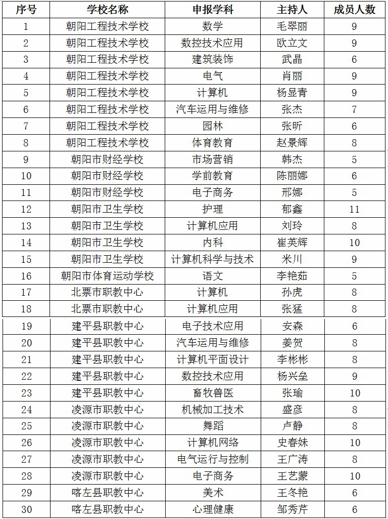 朝陽市中職學(xué)校首批教學(xué)名師工作室組成名單