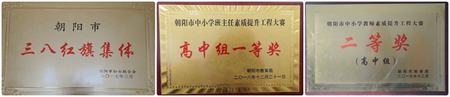 寶劍鋒從磨礪出,梅花香自苦寒來。學(xué)校先后榮獲遼寧省文明單位、規(guī)范教育收費示范學(xué)校、家長學(xué)校先進集體、毒品預(yù)防教育示范學(xué)校、美育特色學(xué)校、食品安全示范校及朝陽市教體系統(tǒng)先進黨委、文明單位、市首屆文明校園、市三八紅旗集體、市平安和諧校園、市德育工作先進校、巿教學(xué)改革先進集體、市級美育教育基地校等榮譽稱號。