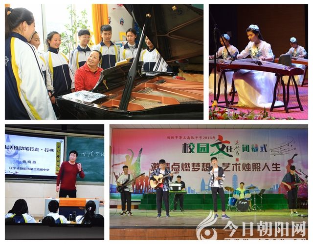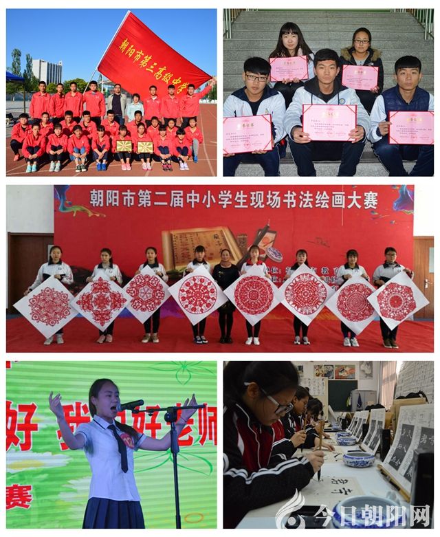 各社團代表學(xué)校參加比賽取得優(yōu)異成績。2019年10月,我校足球隊員參加朝陽市高中學(xué)生校園足球聯(lián)賽,獲全市第二名,并代表朝陽市到大連參加省級比賽,獲省第三名,遲海笙同學(xué)取得國家二級運動員資格;2019年10月,我校獲得朝陽市第三屆中小學(xué)生合唱器樂舞蹈戲曲大賽市直高中組一等獎;2017年,二年八班林彬彬同學(xué)在市教育局舉辦的“老師您好 我的好老師”主題演講中獲市直高中組一等獎;2018年,我校參加朝陽市第二屆中小學(xué)生現(xiàn)場書法繪畫大賽,獲得剪紙項目一等獎。