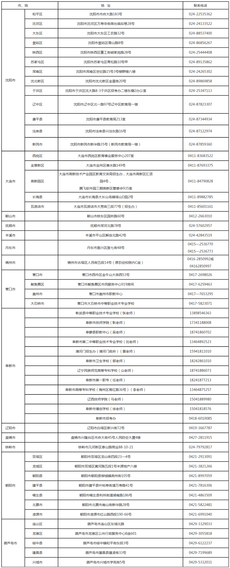 原文鏈接:遼寧省2020年職業(yè)教育對口升學(xué)招生考試統(tǒng)考科目分數(shù)復(fù)核申請受理單位地址和電話一覽表