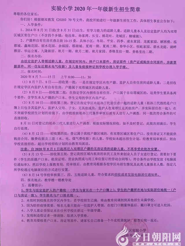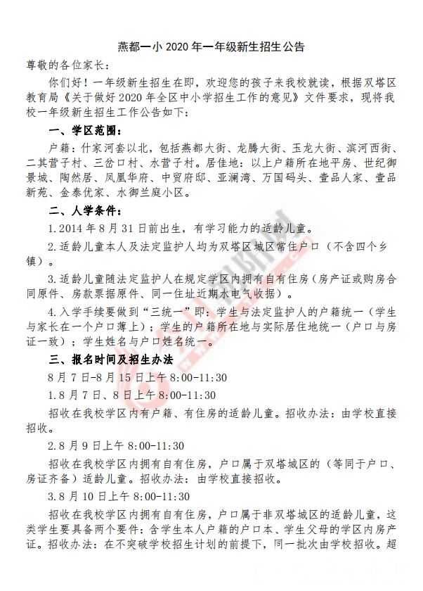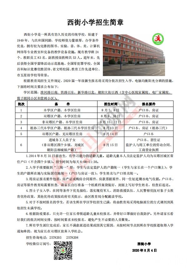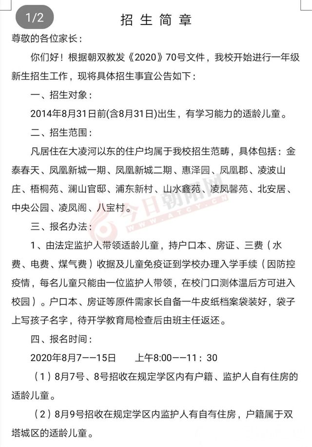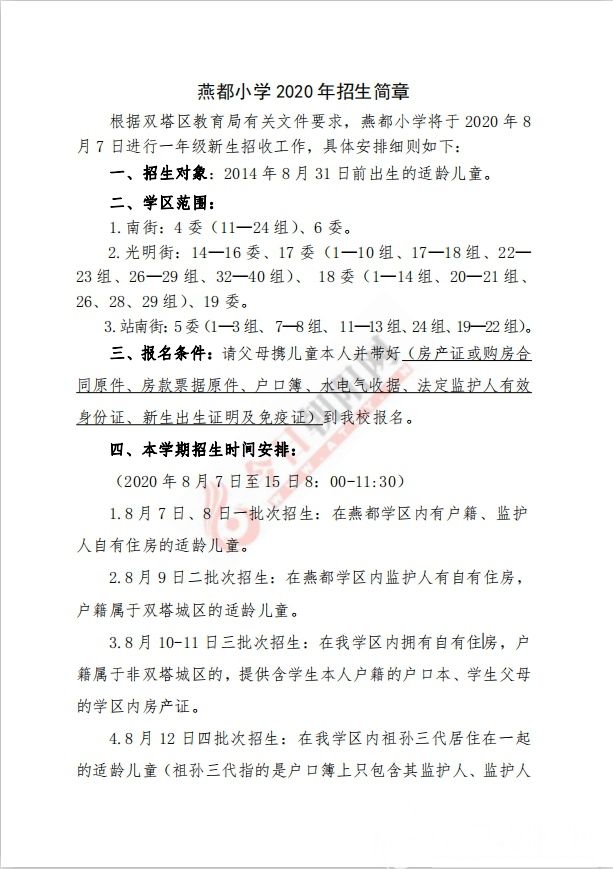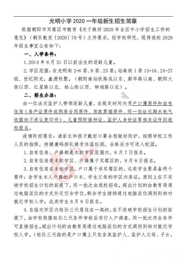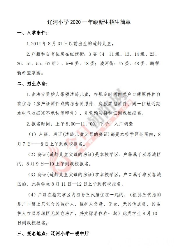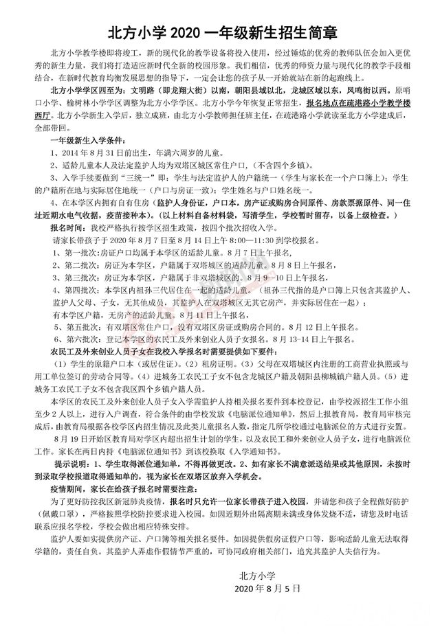 近日,根據(jù)遼寧省朝陽市雙塔區(qū)教育局《關(guān)于做好2020年全區(qū)中小學(xué)招生工作的意見》文件精神,雙塔區(qū)各小學(xué)招生簡章快速擬定并向社會公布。
