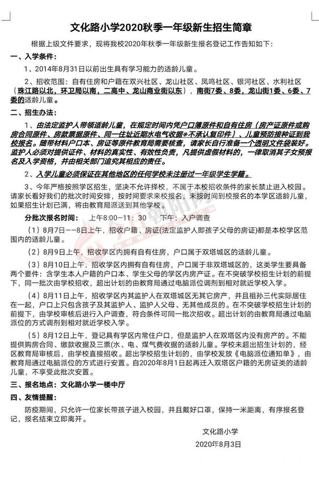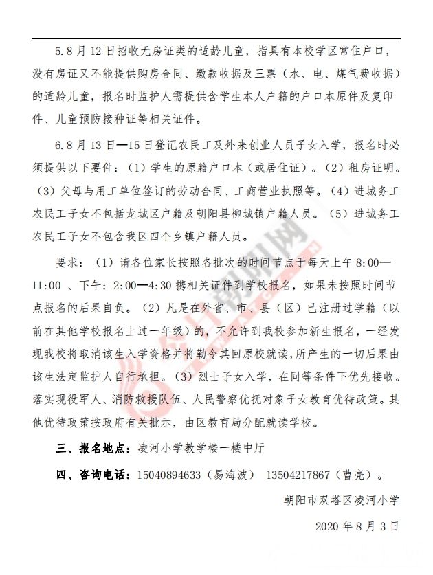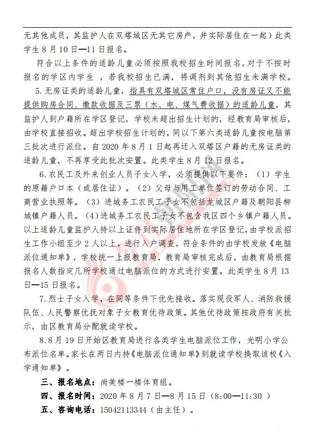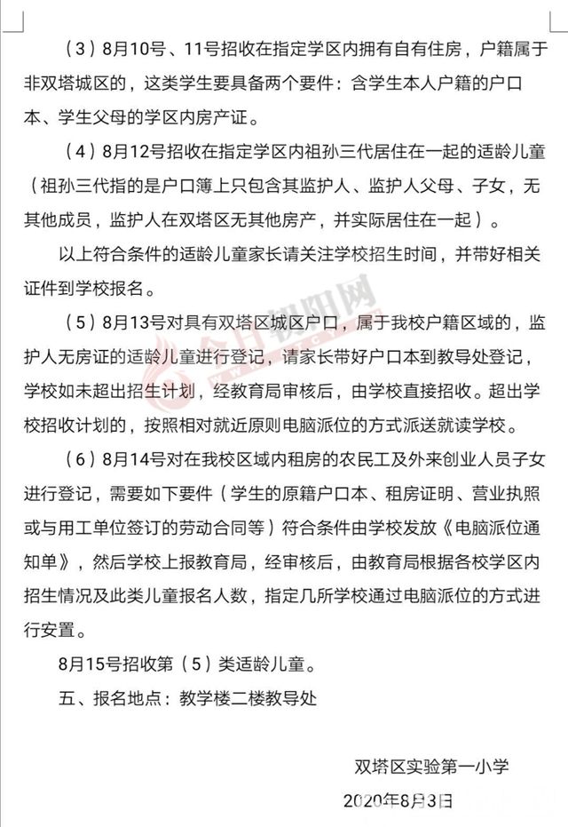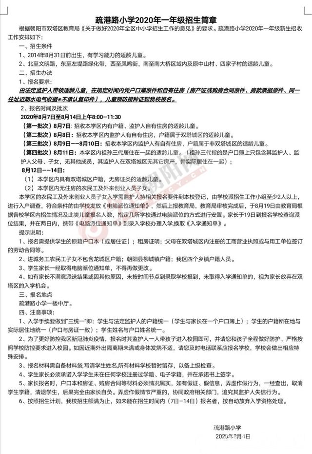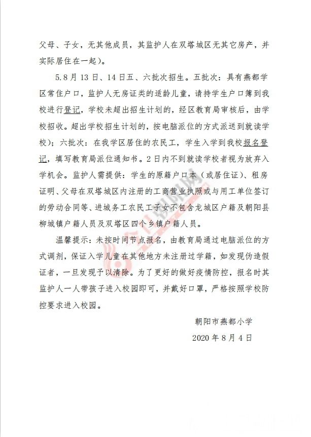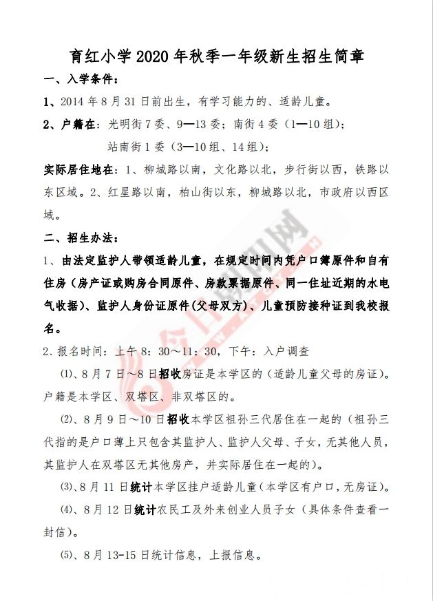 近日,根據(jù)遼寧省朝陽市雙塔區(qū)教育局《關(guān)于做好2020年全區(qū)中小學(xué)招生工作的意見》文件精神,雙塔區(qū)各小學(xué)招生簡章快速擬定并向社會公布。