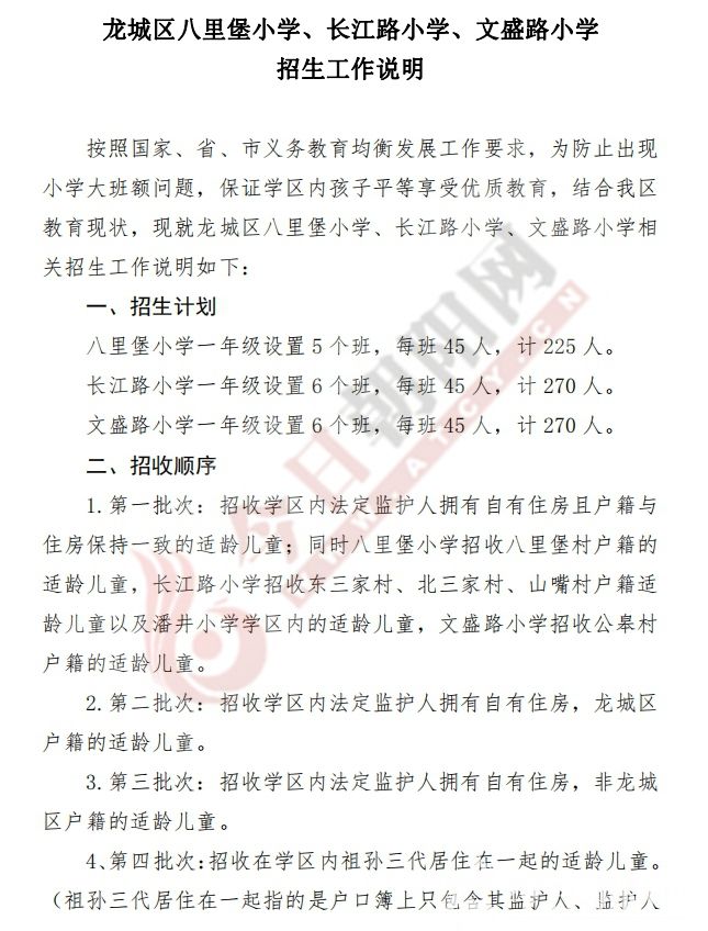 定了!龍城區(qū)八里堡小學、長江路小學、文盛路小學今年這樣招生