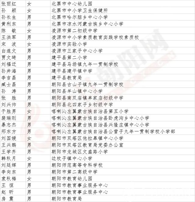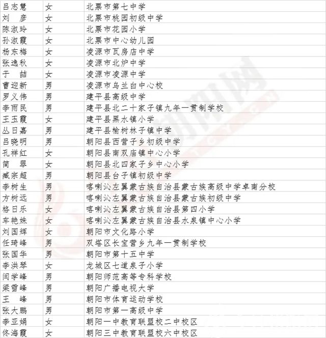 三、朝陽(yáng)市優(yōu)秀教育工作者(30名)