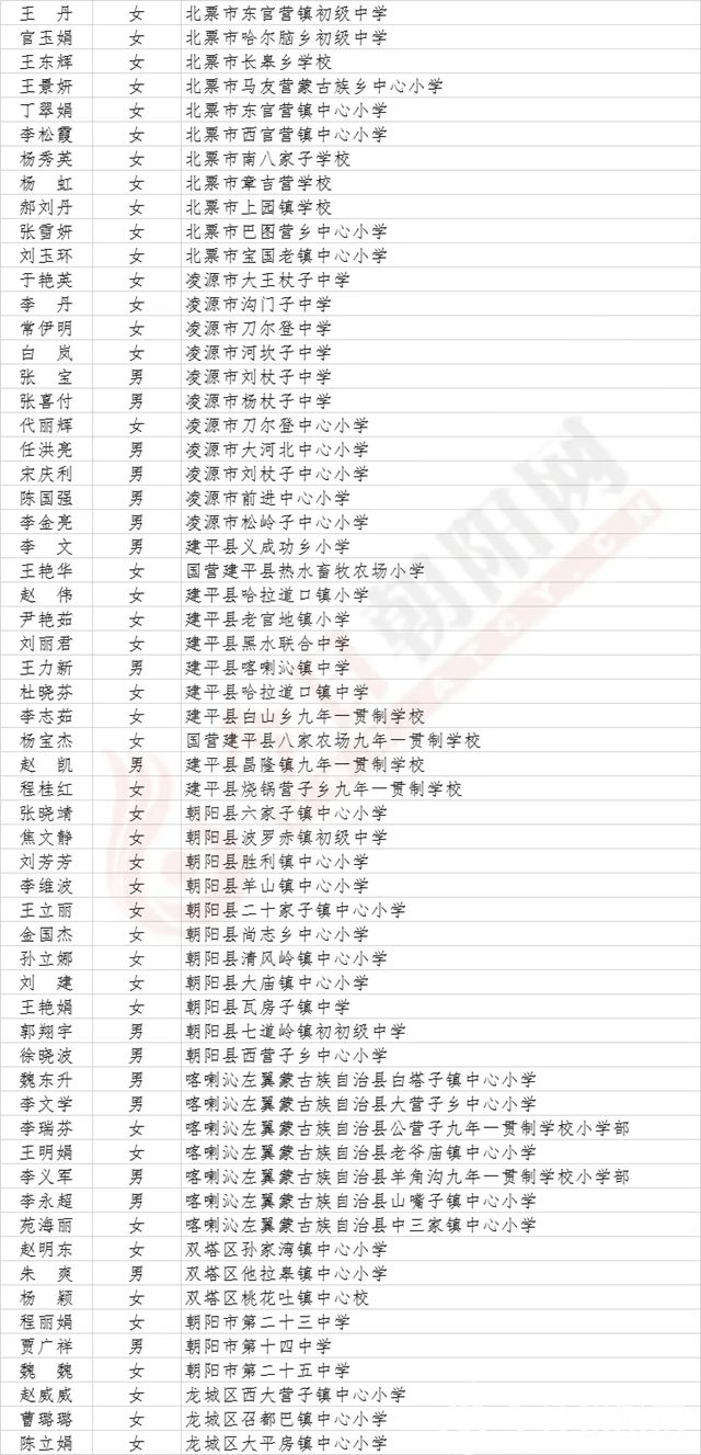 一、朝陽(yáng)市優(yōu)秀教師(242名)