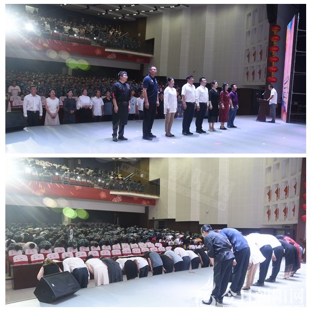 活動伊始,全體人員齊誦《感恩詞》,整齊而洪亮的感恩誓言讓整個會場充滿了感動與勵志的正能量。接著,學(xué)生恭恭敬敬地向老師們行敬師禮,感恩老師的辛勤培育和悉心教導(dǎo)。