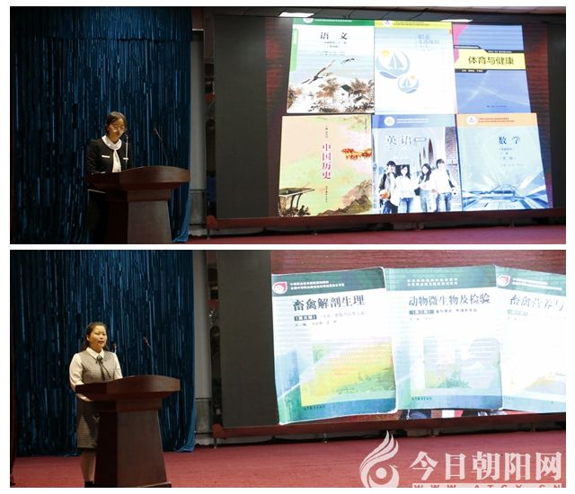 鏡頭一:職教中心文化課教師代表沈婷婷、牧醫(yī)組專業(yè)課教師代表范彥南,借助電子大屏幕,依次介紹了文化課的學(xué)習(xí)方法和技巧,以及專業(yè)課程設(shè)置、校內(nèi)實習(xí)、省市級技能大賽獲獎情況。話語不多,卻點中要害。再加上電子屏幕展現(xiàn)的即時畫面,給現(xiàn)場的同學(xué)們帶來了強烈的視覺沖擊,聽、看、記、學(xué)、悟得津津有味。