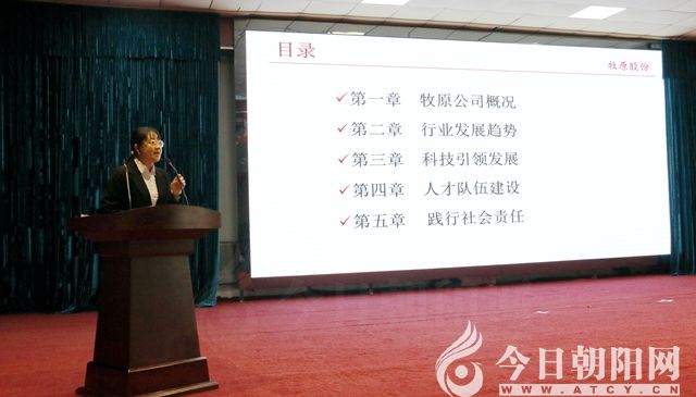 鏡頭二:建平牧原農(nóng)牧有限公司人力資源部經(jīng)理李冉邁著自信、穩(wěn)健的步伐登臺后,從牧原公司概況、行業(yè)發(fā)展趨勢、科技引領(lǐng)發(fā)展、人才隊伍建設(shè)、踐行社會責(zé)任五個方面,發(fā)表了言簡意賅、親切感人的演講,數(shù)百人的會場鴉雀無聲,起到了潤物無聲、鼓舞士氣的效果。