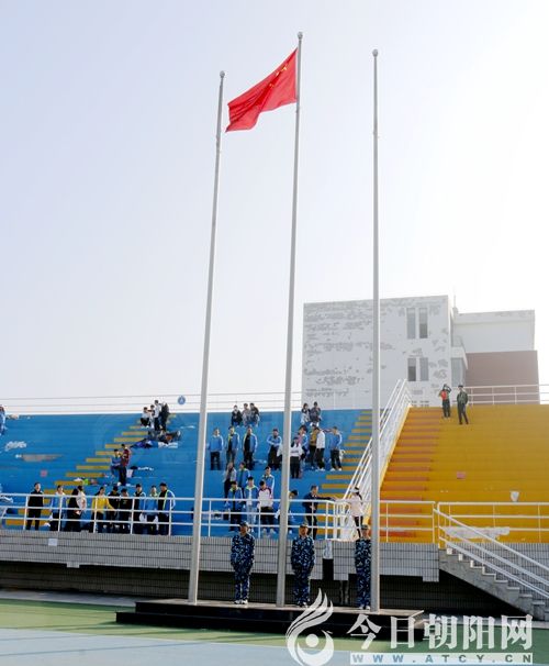 莊嚴(yán)的國(guó)歌聲響起,全體師生高唱國(guó)歌、面向國(guó)旗行注目禮,鮮紅的五星紅旗冉冉升起,高高飄揚(yáng)在比賽場(chǎng)上。