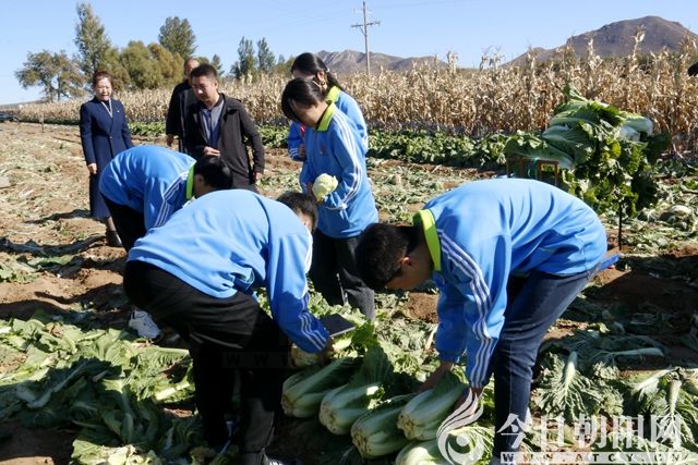 當(dāng)我們來到下洼村小學(xué)時,孩子們早已佩戴好紅領(lǐng)巾,列隊完畢等待著客人們的到來。當(dāng)孩子們接過一本本精美的圖書,看到他們臉上純真的笑容,我感到說不出來的喜悅。隨后我們跟著駐村第一書記梁振來到了村里的一片白菜地,幫助農(nóng)民伯伯裝了半車白菜。由于行程安排,我們勞動的時間并不長,但卻讓我們踏踏實實感受到了農(nóng)民的不容易。我們的團員代表采訪了梁書記,向梁書記了解了一些國家的扶貧政策和下洼村所發(fā)生的變化,梁書記非常認真細致地給我們講解,讓我們感受到國家的扶貧力度、溫度和扶貧干部的責(zé)任擔(dān)當(dāng)。