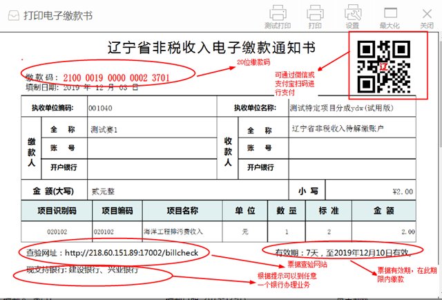 第三步:繳款。繳款人攜紙質(zhì)版“繳款通知書”去銀行或掃描“繳款通知書”右上角的二維碼均可,完成繳款業(yè)務(wù)。請繳款人注意繳款通知書的有效期。