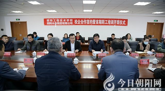 12月14日上午,遼寧省朝陽(yáng)工程技術(shù)學(xué)校與朝陽(yáng)水務(wù)集團(tuán)有限公司校企合作簽約暨首期職工培訓(xùn)開(kāi)班儀式在學(xué)校辦公樓7樓會(huì)議室舉行。朝陽(yáng)水務(wù)集團(tuán)有限公司總經(jīng)理王洪波、副總經(jīng)理賈國(guó)慶及主要部門(mén)負(fù)責(zé)人,工校黨委書(shū)記、校長(zhǎng)武鐵兵,副校長(zhǎng)陳塞月、劉文光及相關(guān)科室負(fù)責(zé)人與建筑教學(xué)部部分教師參加了簽約儀式。簽約儀式由劉文光主持。