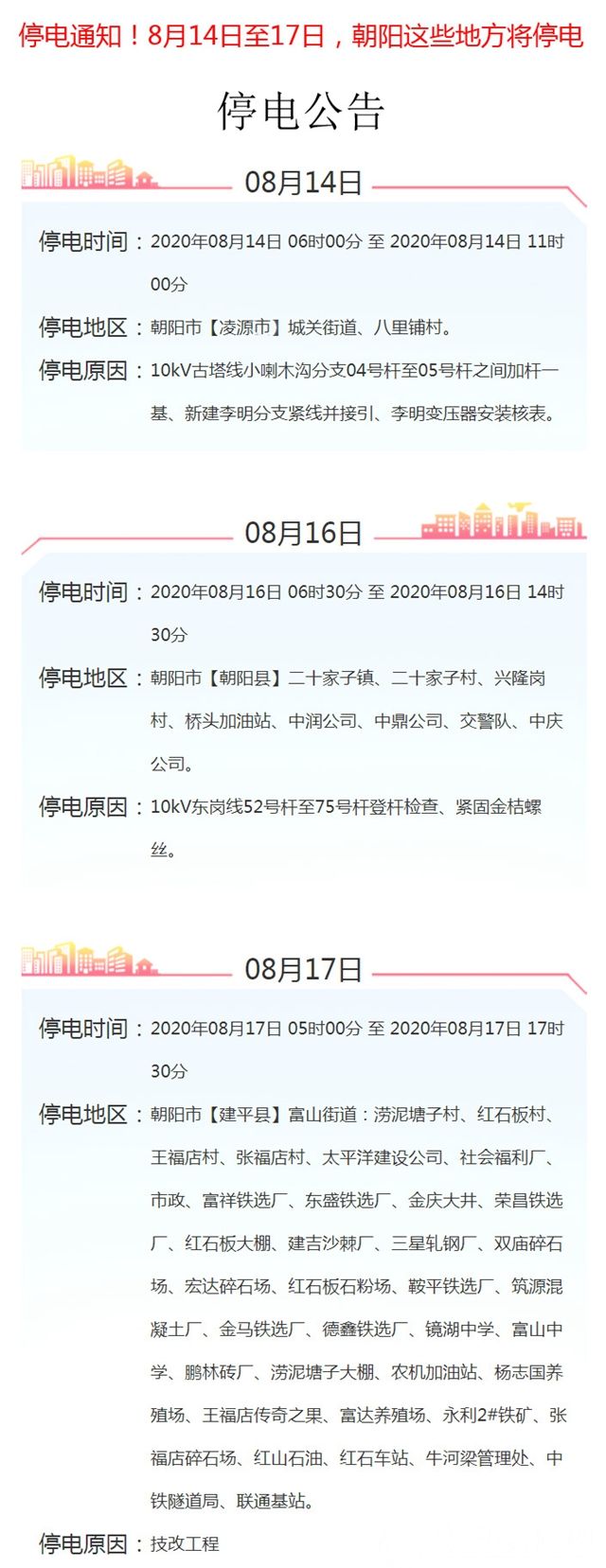 (本文內(nèi)容綜合“國網(wǎng)朝陽供電服務微信公眾號”所發(fā)布的停電公告)