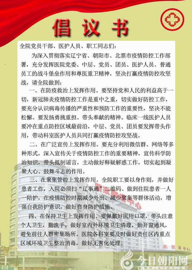 北票市中心醫(yī)院、中醫(yī)院向全院職工發(fā)出倡議