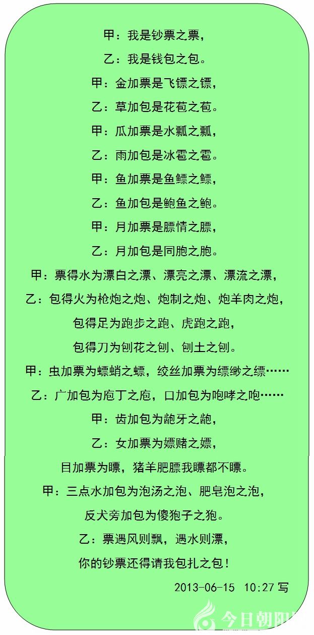 摘要:甲:我是鈔票之票,乙:我是錢包之包。