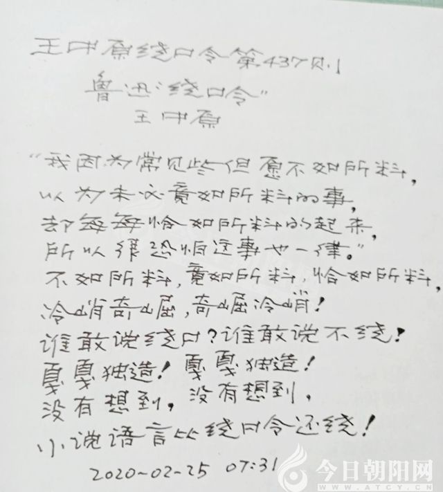 王中原,漢族,1947年生。函授中文??茖W歷,中學高級教師(已退休)。系今日朝陽網(wǎng)文化信使,中國楹聯(lián)學會會員,《咬文嚼字》雜志特約審校。曾為《語文學習》《演講與口才》等期刊業(yè)余審校數(shù)十年。近年撰寫繞口令400余則。個人原創(chuàng)繞口令專集《繞口令教你巧舌如簧》(趙立濤點評),被列入“新編播音員主持人訓練手冊 ”叢書,由中國傳媒大學出版社出版發(fā)行。