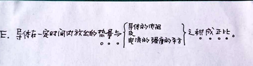 E.導(dǎo)體在一定時(shí)間內(nèi)放出的熱量與導(dǎo)體的電阻及電流的強(qiáng)度的平方之積成正比。