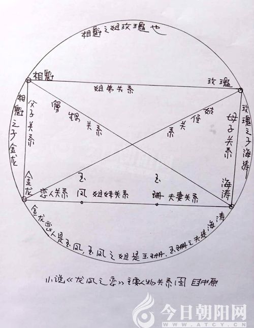 語言是線形的,我筆下寫得有條不紊,你腦中可能一團(tuán)亂麻。于是,我畫了一張“小說《龍鳳之戀》主要人物關(guān)系圖”,傳給小妹。我說我要寫小說,一分真實(shí),九分虛構(gòu)。你寫就方便多了。